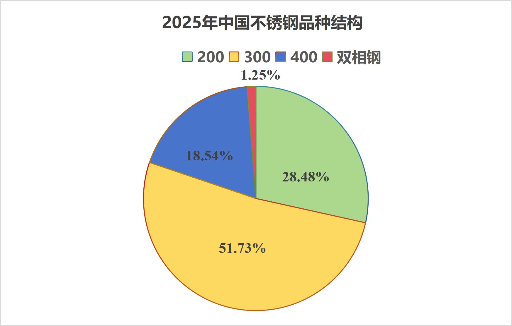 从品种结构看,Cr-Ni钢(300系)所占比例上升了0.28个百分点,占比51.73%;Cr钢(400系)所占比例上升了0.35个百分点,占比18.54%;Cr-Mn钢(200系)所占比例下降了0.84个百分点,占比28.48%;双相不锈钢产量占比上升至1.25%。