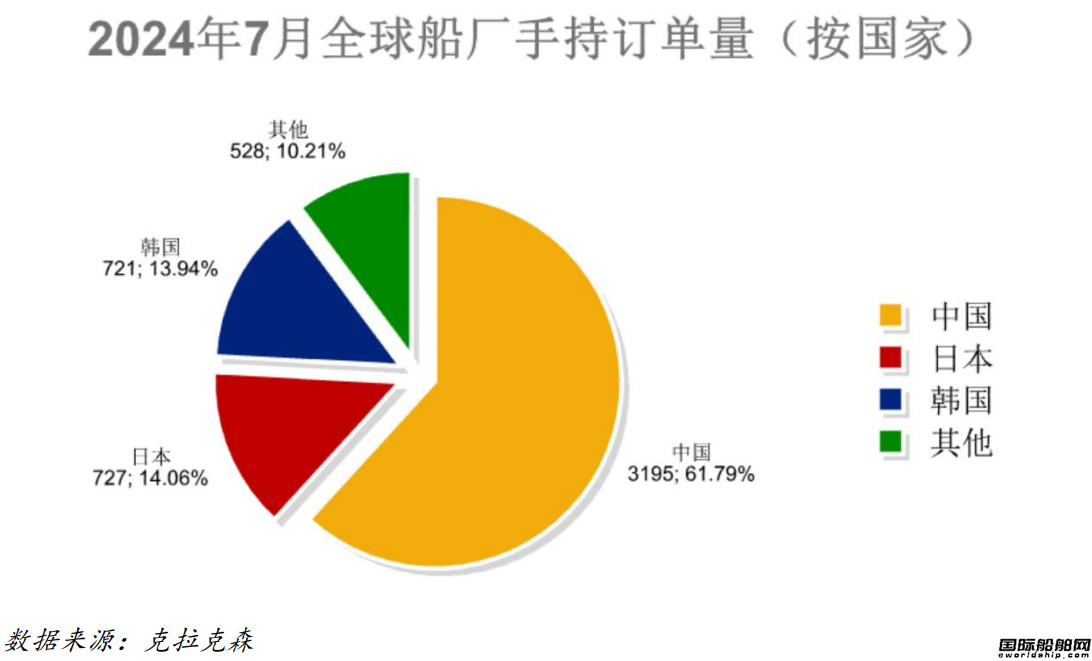 全球手持订单5171艘,中国船厂3195艘占全球市场份额的61.79%