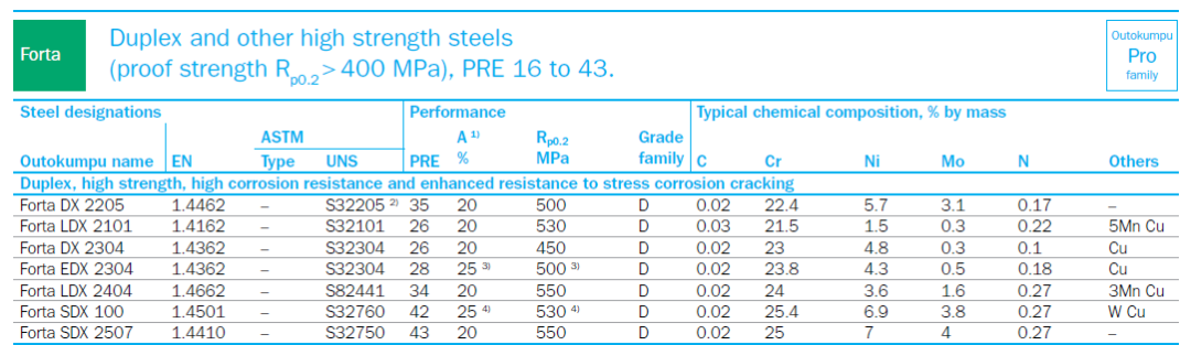 ●柔性管道 Forta双相不锈钢,镍含量低,机械强度高