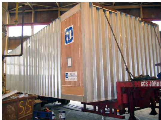 库存商提供了2毫米厚的不锈钢板。然后用车间内数控等离子切割机和冷压机制造出所要求的形状。预制的带有隔热层的不锈钢面板被焊到结构框架上。将碳钢焊到不锈钢上使用熔化极惰性气体保护电弧焊(MIC)工艺,在氙气保护下,连续输进标准不锈钢焊条。制造完成后,对钢板进行酸洗以去除任何嵌入的铁颗粒,当这些颗粒暴露于海洋环境下中时,就会锈蚀。