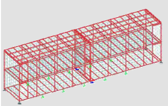 图5: 4组生活舱单元的STAAD.Pro 框架构成模型