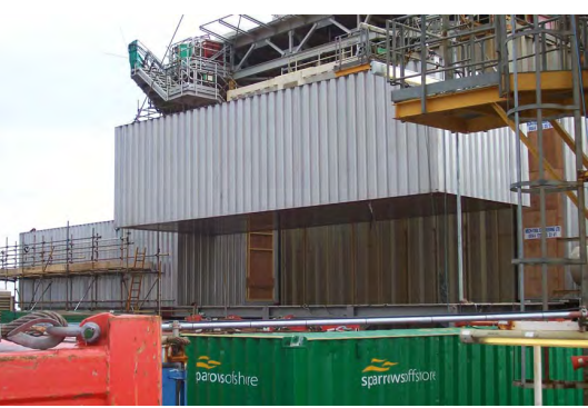 对结构的包覆采用了符合EN10088-2川标准的2B轧制表面奥氏体不锈钢1.4401(S31600)。这种钢暴露于碳氢化合物失火中60分钟后仍显示保持了足够的强度和坚硬度,以及优异的延展性和韧性,这可以抵御设想中发生的爆炸。