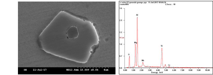 图4 (Ti, Nb)(C, N)以镁铝尖晶石为核心形核长大