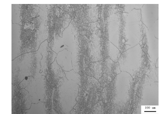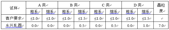 根据标准GB/T 10561和GB/T 6394,对轧圆成品进行非金属夹杂物及晶粒度检测,结果如表2所示。夹杂物水平和晶粒度完全符合客户要求。图3是永兴轧圆的晶粒度照片。图4是永兴轧圆的非金属夹杂物照片。
