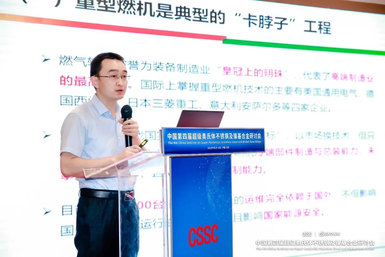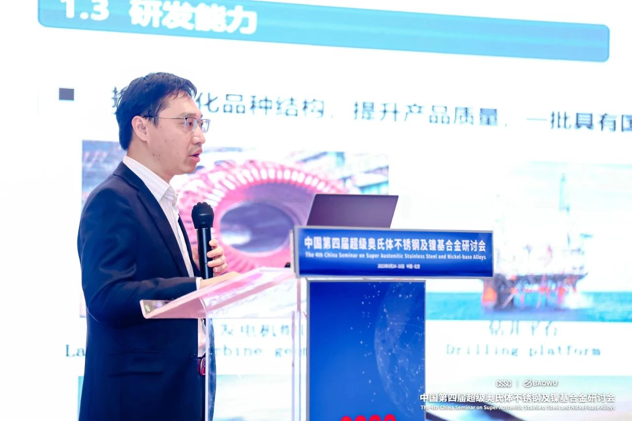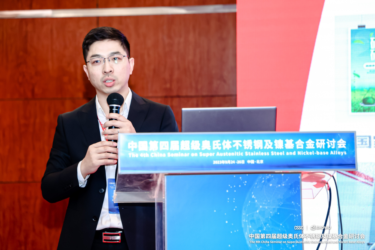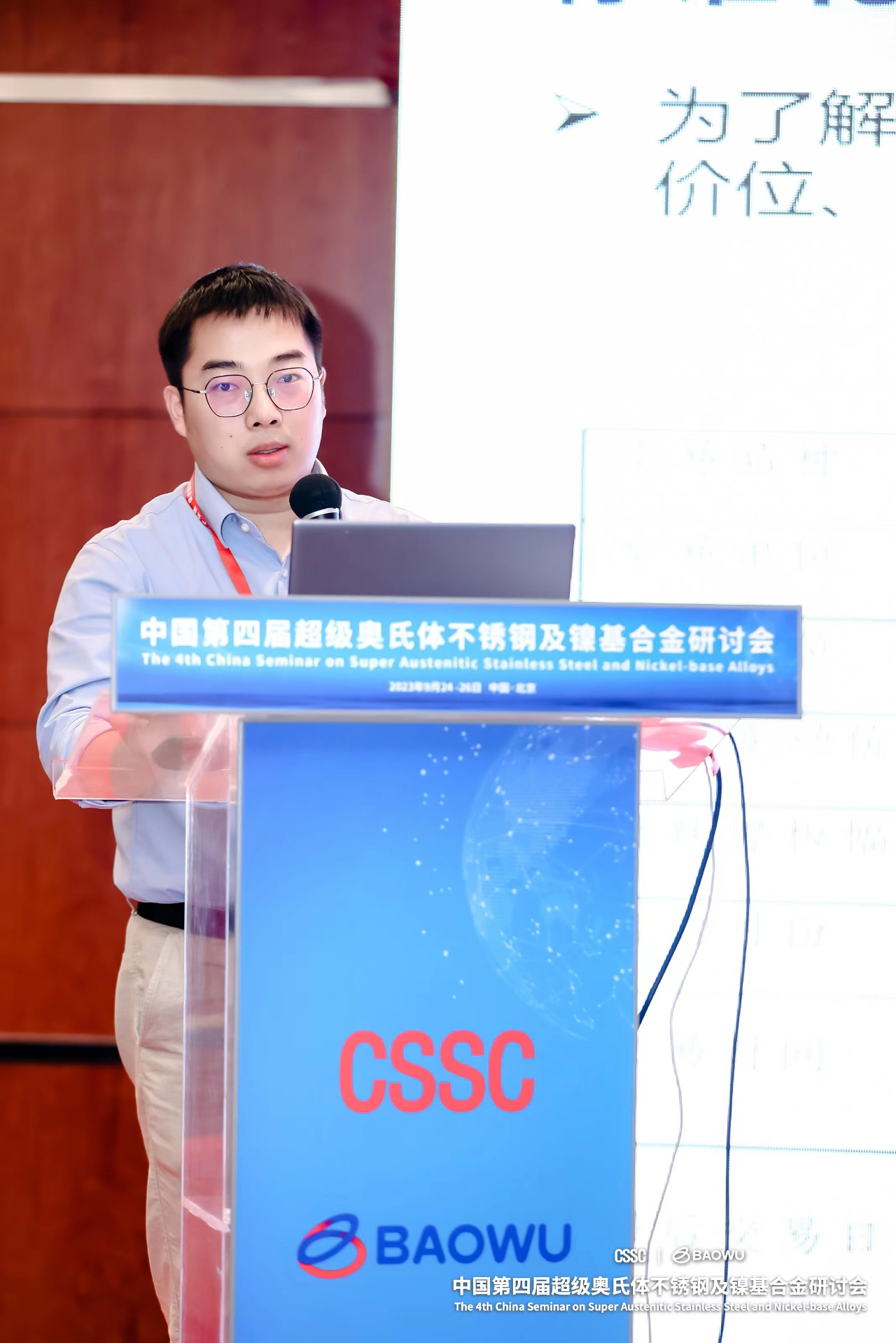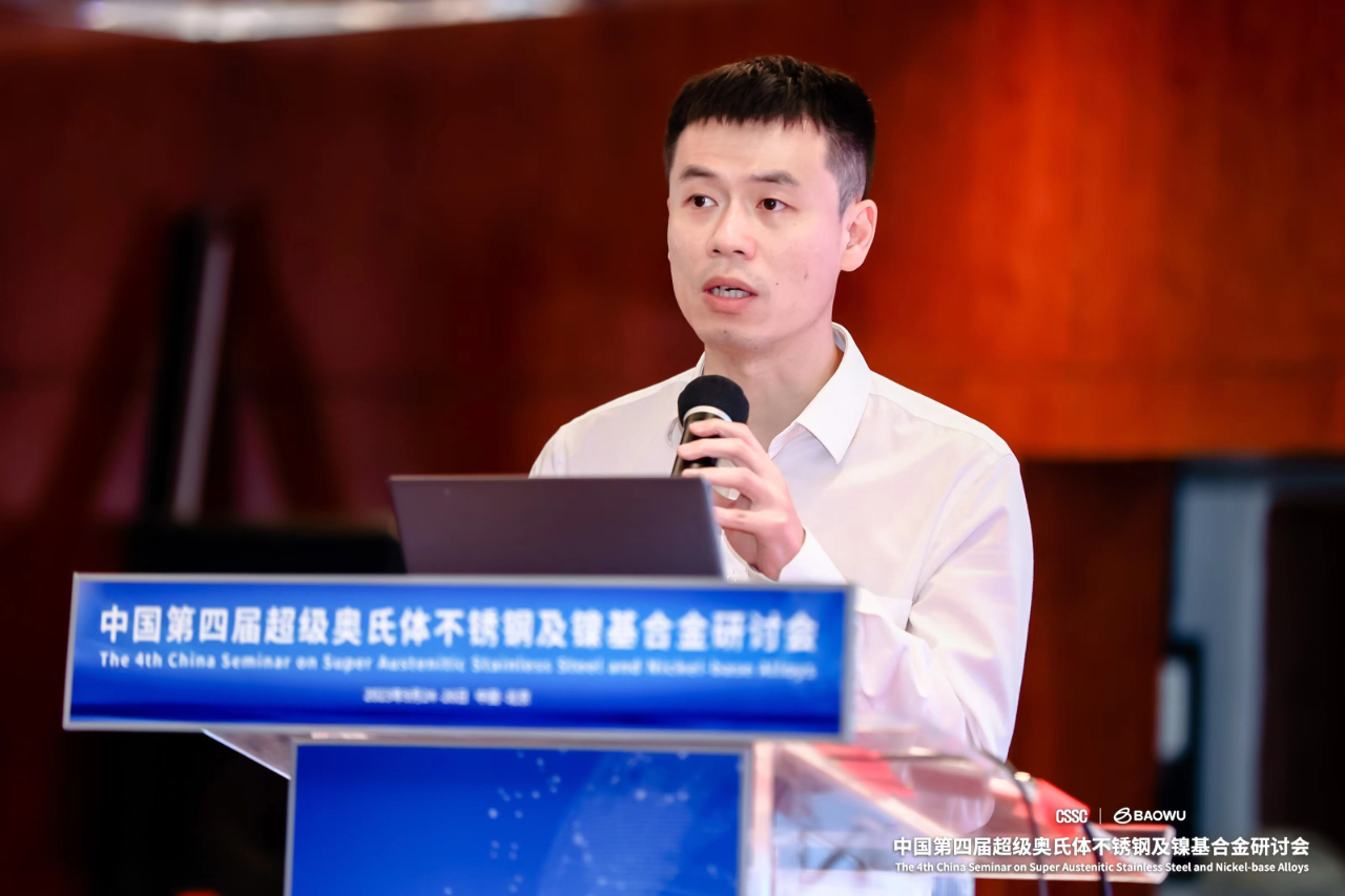 谷宇博士 中国宝武太钢集团技术中心副主任,演讲题目:太钢镍基合金产品研发及先进技术。近些年太钢投入大量的人力资金,镍基产品系列丰富,耐蚀合金、精密合金产品实现卷、板、带、型、管、线多类型覆盖,取得了巨大进步,但与VDM、哈氏合金、日本冶金等国际知名企业存在差距。未来凭借自身技术优势、精益求精的质量,更加专注于镍基合金立弯连铸技术、镍基合金方坯连铸、薄带/超薄带轧制技术等,为用户提供更高效、更经济、更绿色的产品和服务,实现高质量、低碳绿色发展。