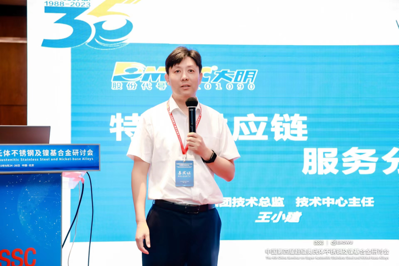 王小建 大明国际技术总监兼技术中心主任,演讲题目:特材供应链 服务分享,首先提到大明作为加工环节,为生产企业与下游用户搭建了很好的服务平台,加工行业同样重要,能及时高效与用户接触,代表了行业的心声。通过大明特材供应链综合优势,围绕客户的难点与痛点,以客户为中心,为客户提供服务。