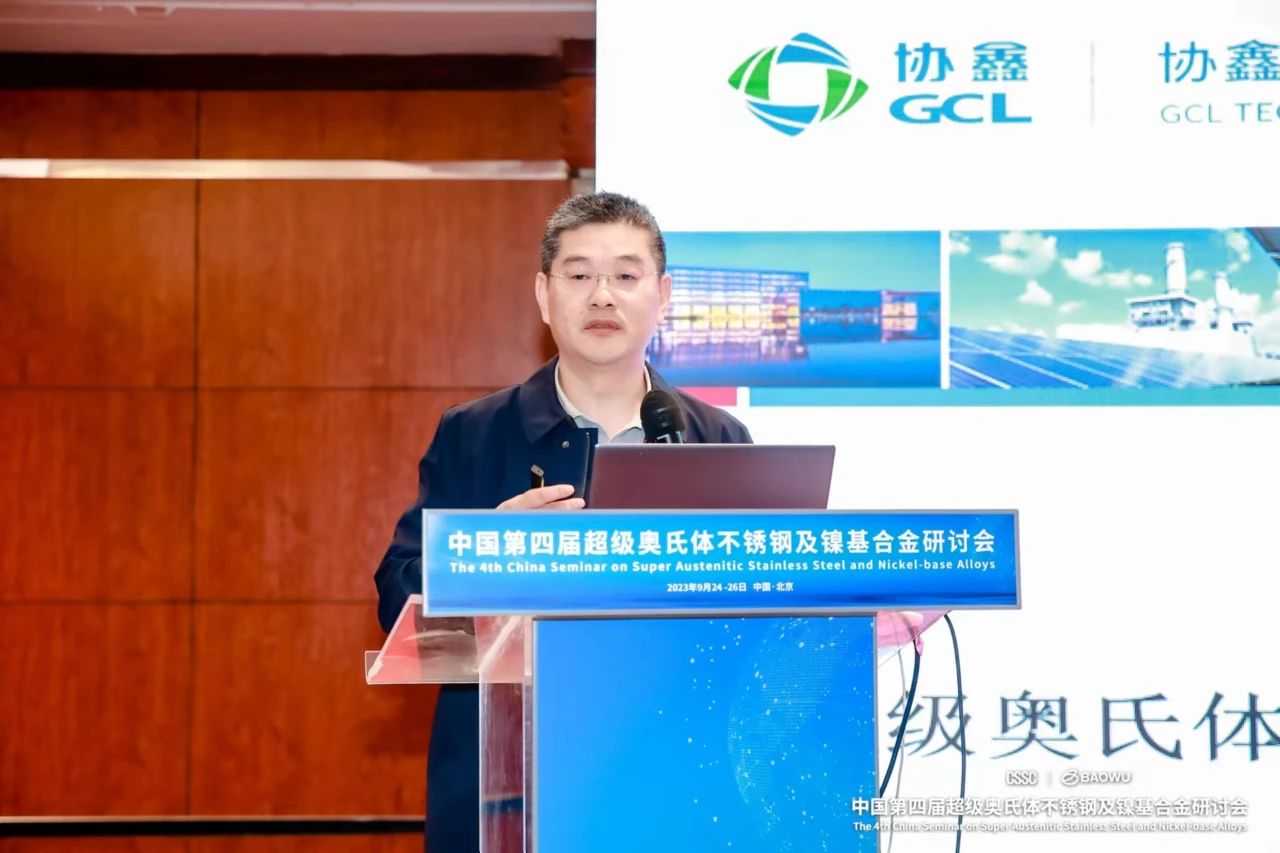 李鹏高工 江苏中能硅业科技发展有限公司,演讲题目:超级奥氏体不锈钢在多晶硅行业的应用,公司是国内最先研发的改良西门子超大规模多晶硅生产工艺,荣获国家专利奖。硅烷流化床法技术,荣获中国、法国光伏原材料领域的首张碳足迹证书。工程采用N08810热强度高,防止高温蠕变,解决了腐蚀问题。国产N08120板可做大直径装备,在多晶硅行业的应用,有使用两种合金的经验,使下游客户能有更多选择,是第一家介入颗粒硅的企业。
