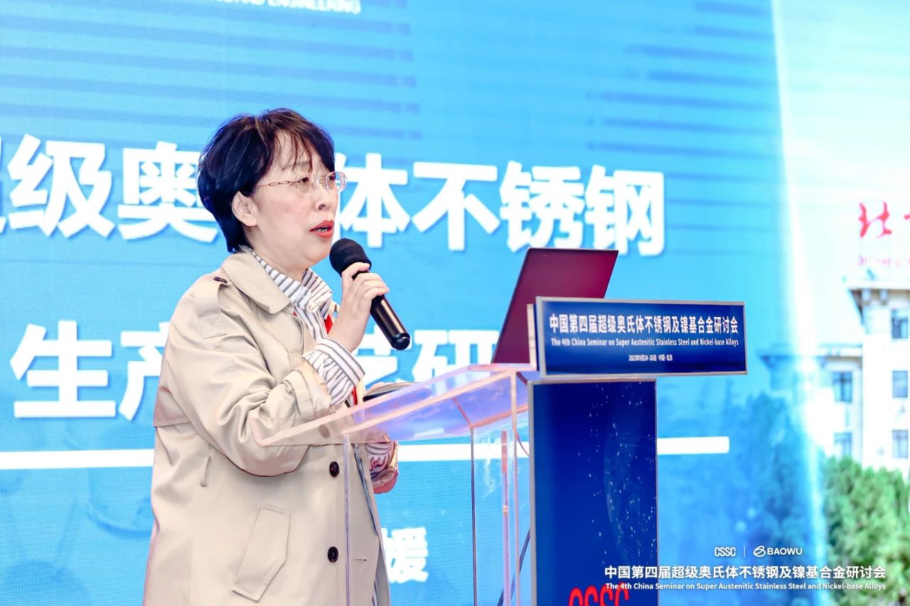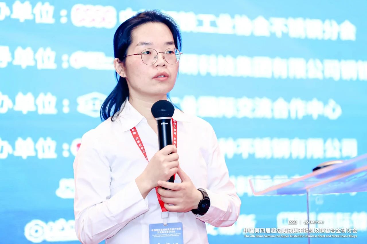 李静媛教授 北京科技大学, 演讲题目:超级奥氏体不锈钢生产工艺研究,以654SMO为研究对象,分析了高温变形的微观组织演变规律,对254SMO铸坯开裂行为研究,分析柱状晶状脆断原因,并提出解决方案。