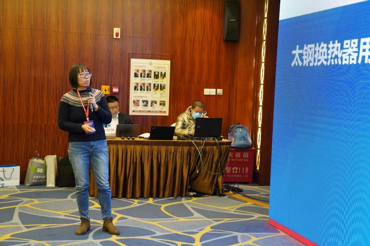 太钢技术中心 主任研究员张晶晶,发言题目《太钢换热器用THE系列产品开发》,全面梳理了太钢换热器的产品开发,重点论述了THE28M4的产品优势,应用业绩,以及目前存在标准方面的限制,并提出合理建议。