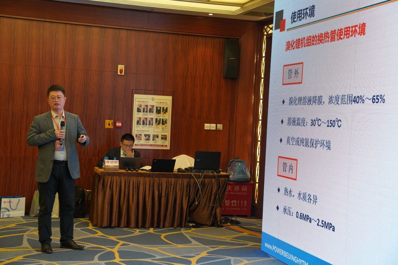 北京华源泰盟节能设备有限公司 副总经理/总工程师肖常磊,发言题目《铁素体不锈钢445J2在溴化锂吸收机的应用介绍》,溴化锂属于新的应用领域,从设备使用角度介绍了445J2的强腐蚀力、物理性能、力学性能,价格优势及应用中面临的挑战,并提出445J2是比较理想的换热器材料。