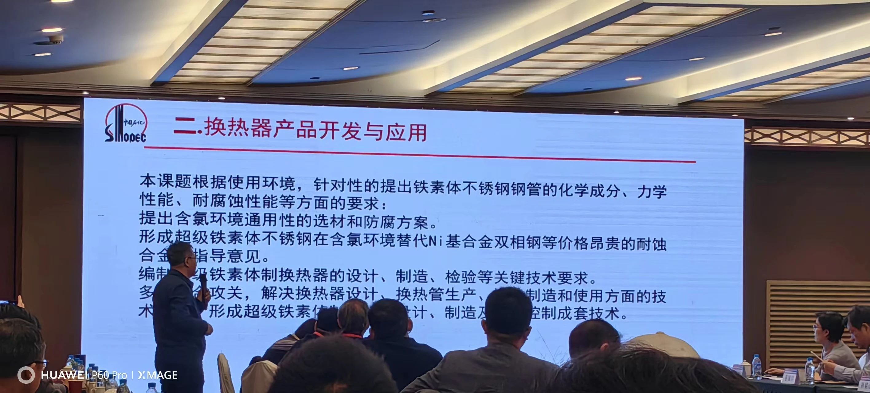 中国石化天津石化首席专家 中石化南港大乙烯项目执行经理兼质量总监李春树,发言题目《超纯铁素体不锈钢在石化设备中的应用及展望》,超纯铁素体广泛应用于炼油、化工以及污水处理的装置,提出在含氯环境中防腐方案,以及替代价格昂贵的镍基合金的指导意见,为后续产品开发提出了精准的信息。