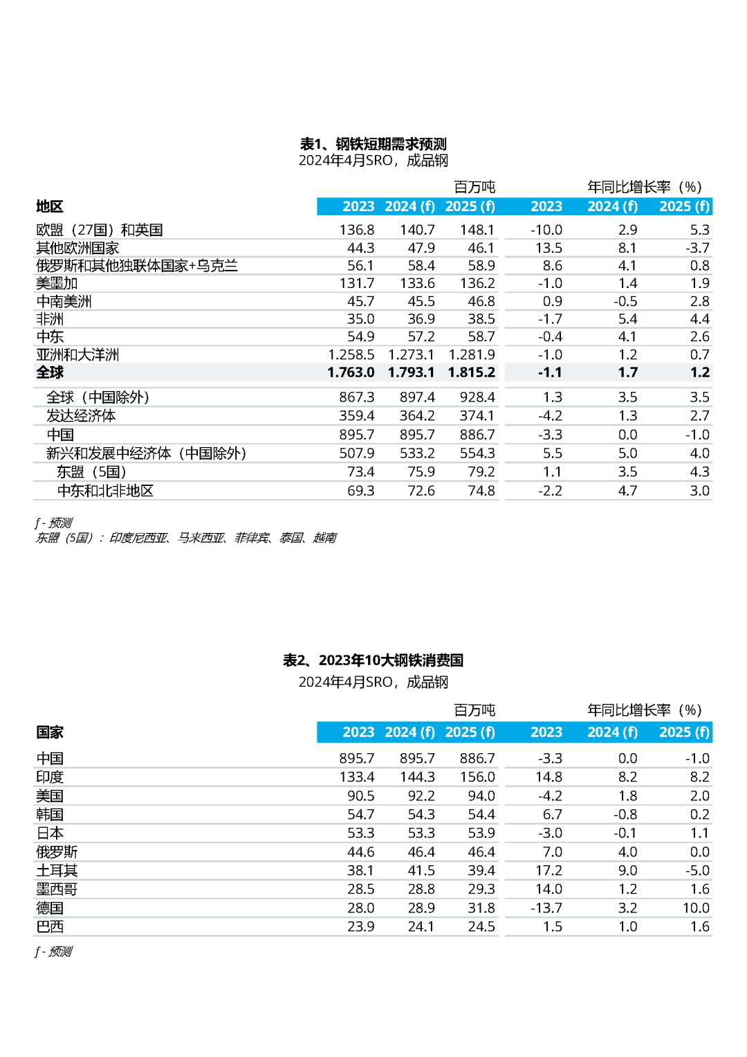 2024年至2025年期间,全球(中国除外)钢铁需求将出现相对较强的宽幅增长,增幅为每年3.5%。
