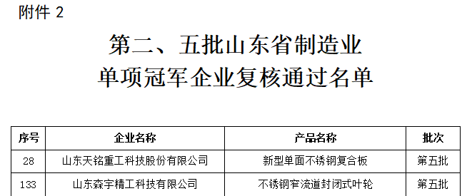 日前,山东省工业和信息化厅发布了《关于公布第八批山东省制造业单项冠军企业和通过复核的第二、五批制造业单项冠军企业名单的通知》。