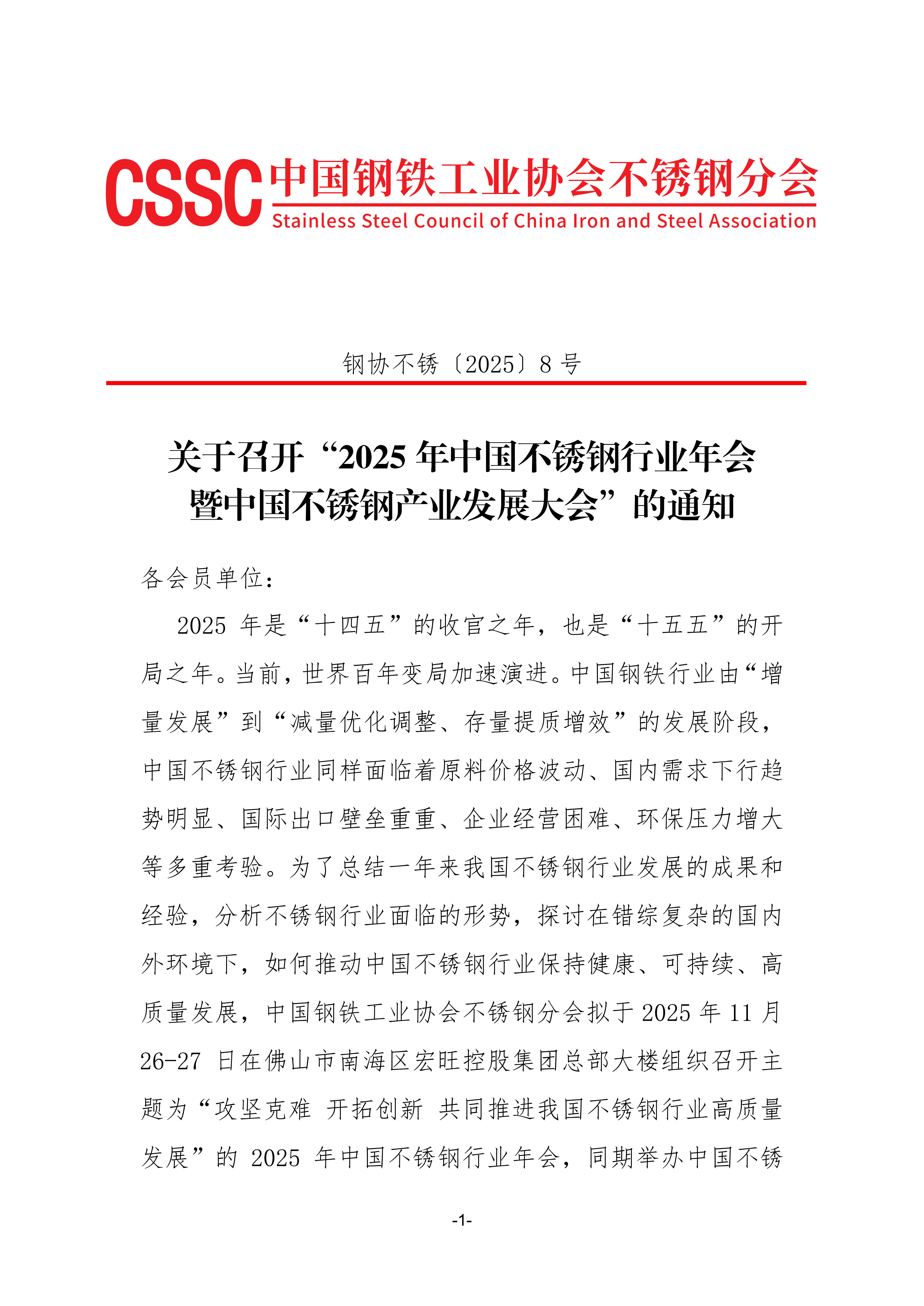 2025年中国不锈钢行业年会暨中国不锈钢产业发展大会 会议通知