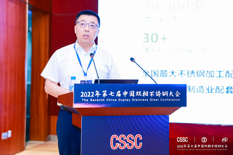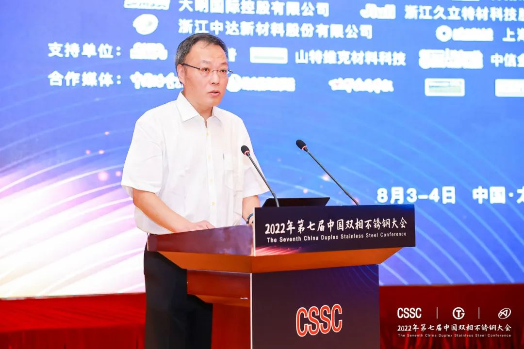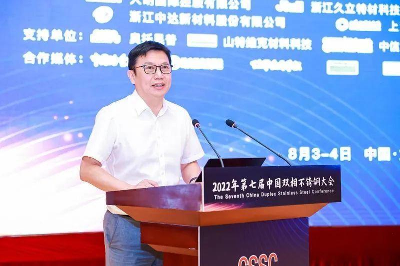 柴志勇在致辞中说:我国自20世纪70年代开始进行双相不锈钢的研究和开发,历经多年的发展,中国双相不锈钢已经形成了包括三代双相不锈钢、经济型不锈钢、特超级双相不锈钢等在内的相对完整的系列,在产量、品种不断增长的同时,其应用领域也在石化、油气输送、化学品船制造、核电、建筑等领域得以不断拓展。希望与会来宾能够以此次会议为平台,进一步促进彼此了解,合作共赢,深入研讨双相不锈钢在研发、生产、加工、应用中的关键问题,推动行业发展,为我国高质量发展作出新的贡献。