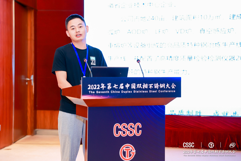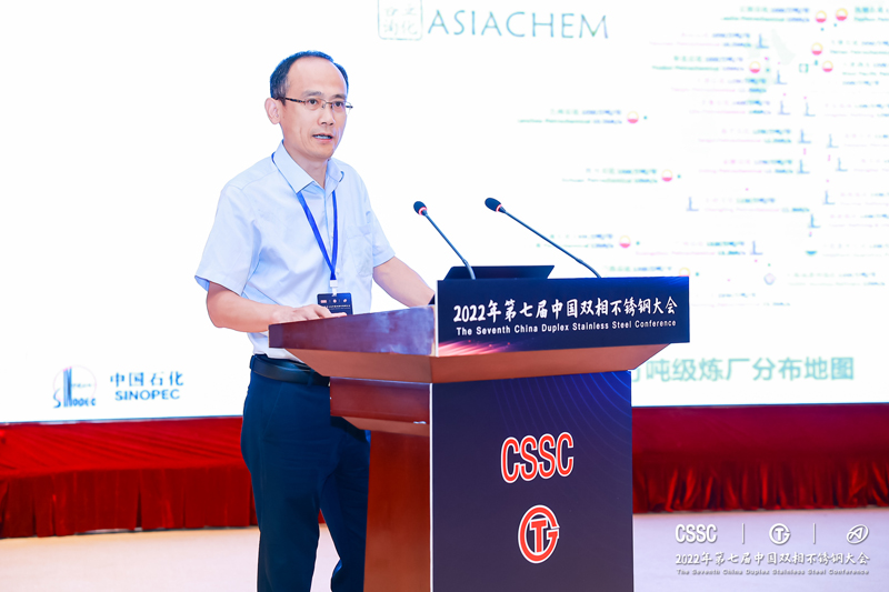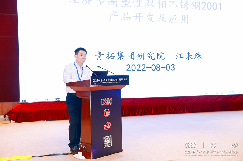 青拓集团研究院院长江来珠作报告《经济型高塑性双相不锈钢2001产品开发及应用》