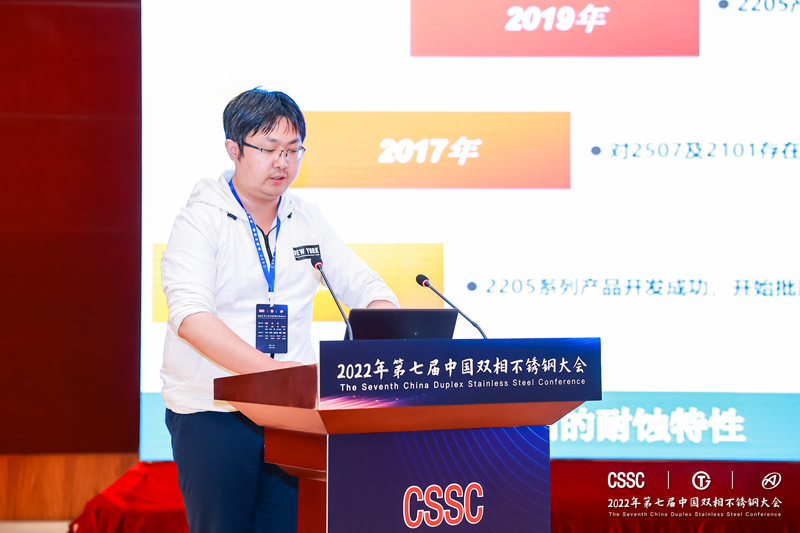 中国宝武中央研究院太钢技术中心武敏博士作报告《超级双相不锈钢S32750中chi相的析出机制研究》