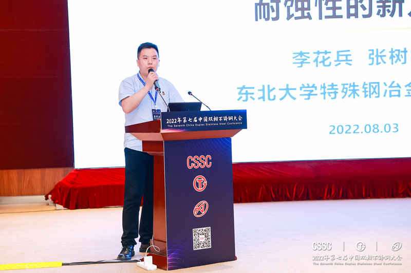 中国宝武中央研究院太钢技术中心李国平教授作报告《基于Nb微合金化改善2205双相不锈钢强韧性的研究》