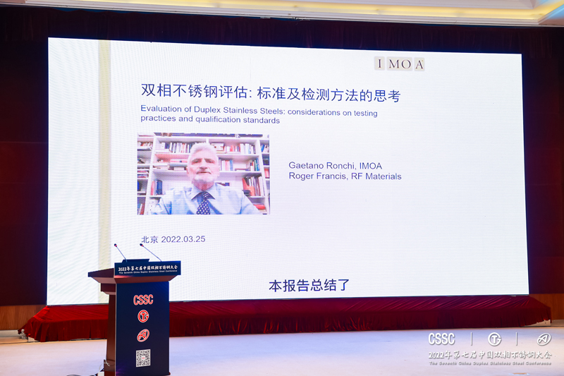 国际钼协会Gaetano Ronchi博士作视频报告《现场检测双相不锈钢有害相的方法》