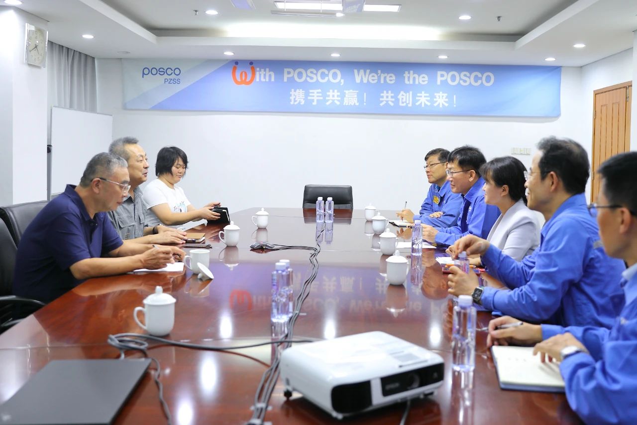 李柱協董事长等领导介绍了张浦目前的生产经营现状。双方就当前产能过剩问题、进出口相关财税政策、废钢税费、生产流程优化、市场开发、钢铁行业未来发展与绿色低碳转型等进行了交流。高祥明副会长表示浦项是不锈钢业绩非常优秀的企业,在不锈钢行业影响非常大,张浦面对市场严峻形势,迎难而上、积极创新,提质增效的精神是不锈钢行业的楷模。